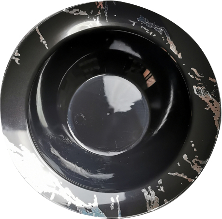 10 Black & Silver Hard Plastic Soup Bowls