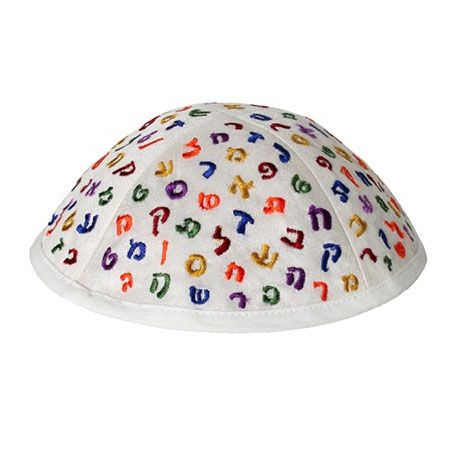 Yair Emanuel White Embroidered Kippah With Hebrew Alphabet